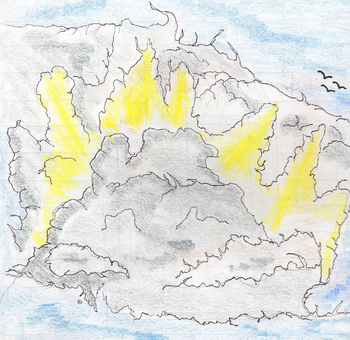 The bright light shining from behind the clouds, a reminder of Jesus, the Light, and a promise of His return.