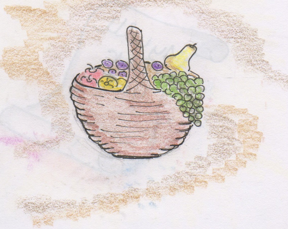 A basket full of fruit represents a gift from God; He gives us everything we need, especially His Son, Jesus Christ. He gives of Himself.