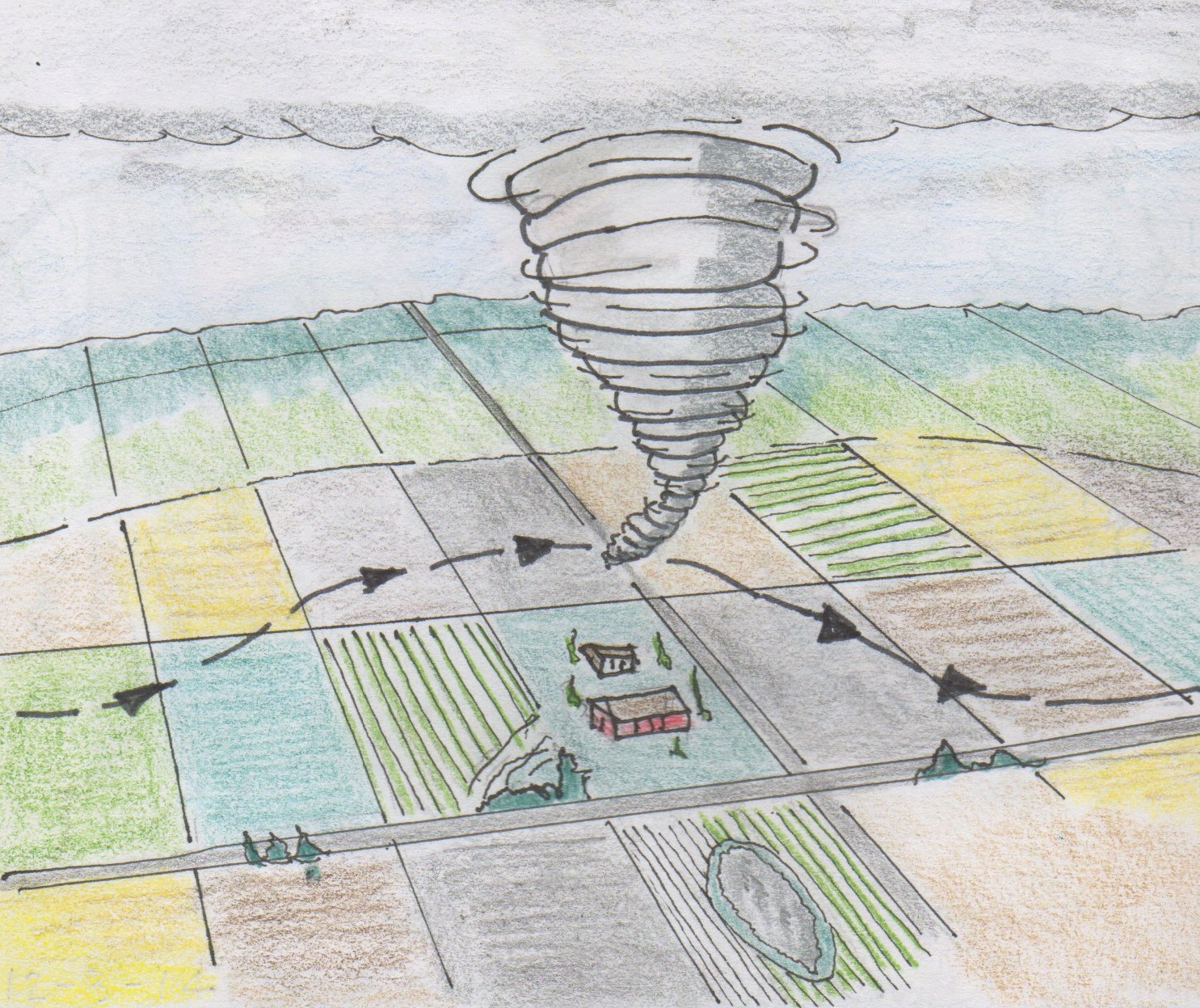 The Scene: The tornado represents trouble in this world. The Christian’s trouble can seem like a tornado. The tornado’s path is unpredictable. The tornado’s path may take it along the ground, going left or right, or up or down, hitting some things, missing others. Such is life with its ups and downs. However, God in His Word tells us that no matter the circumstances, Jesus is with us. If we are faithful, He is faithful. His Word tells us so. With His help we will win, overcoming the world and its troubles.