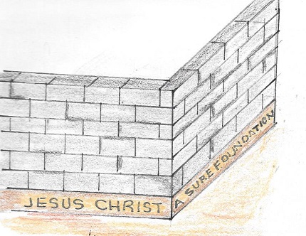 The Scene: A strong solid wall, standing firm on its foundation–representing the Church with Jesus Christ as its foundation, standing in the unty of the faith.