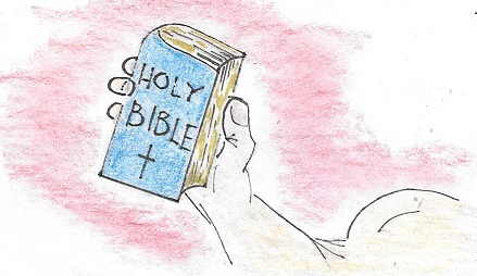 The Scene: Symbolic of the Lord’s mighty right arm. His strong right hand is holding up the Bible–Holy Scripture, as though holding a sword in His right hand.