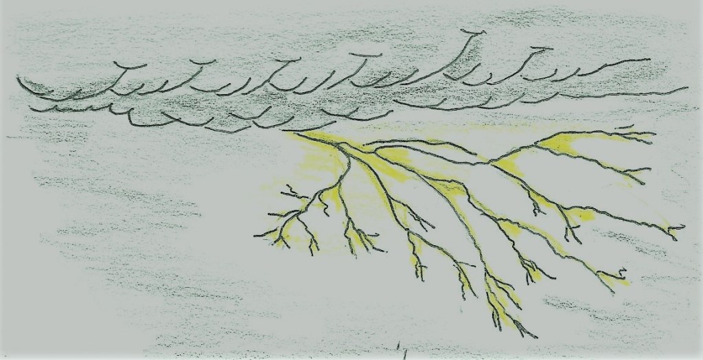 We cannot see the electricity in the atmosphere with our eyes until the lightning appears and then we hear the thunder crash or roll. Then we can see the awesome power stored above.