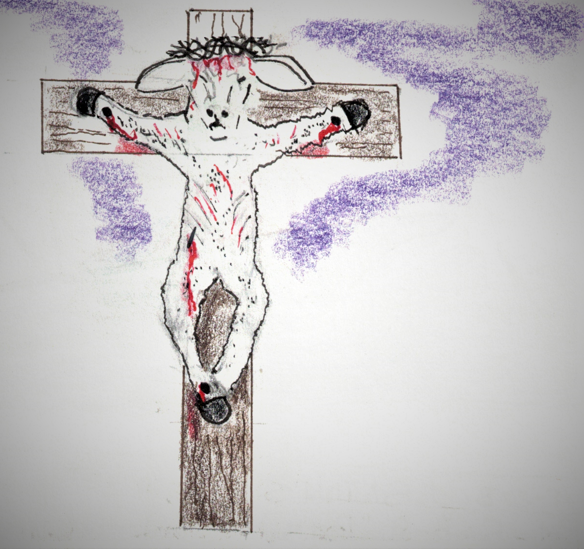 The Scene: A lamb without spot or wrinkle, hanging on a cross; representing the Lord Jesus Christ, who went to the cross, died, and was resurrected again on the third day, to take away the sin of the world. Jesus, God’s own Son, took on the form of a man, came to earth to be sacrificed for all mankind. He gave His all.